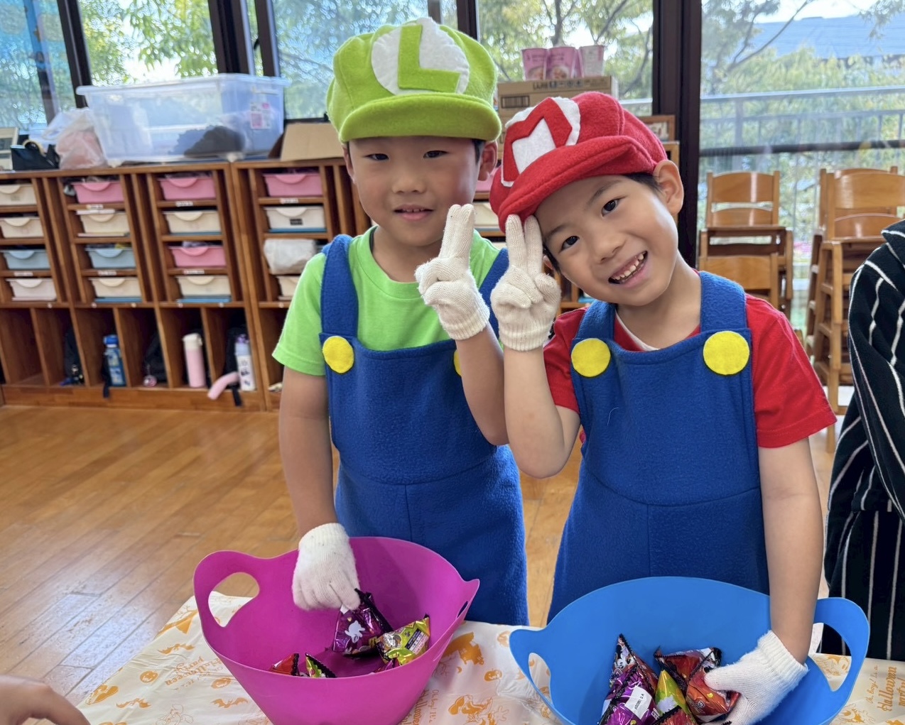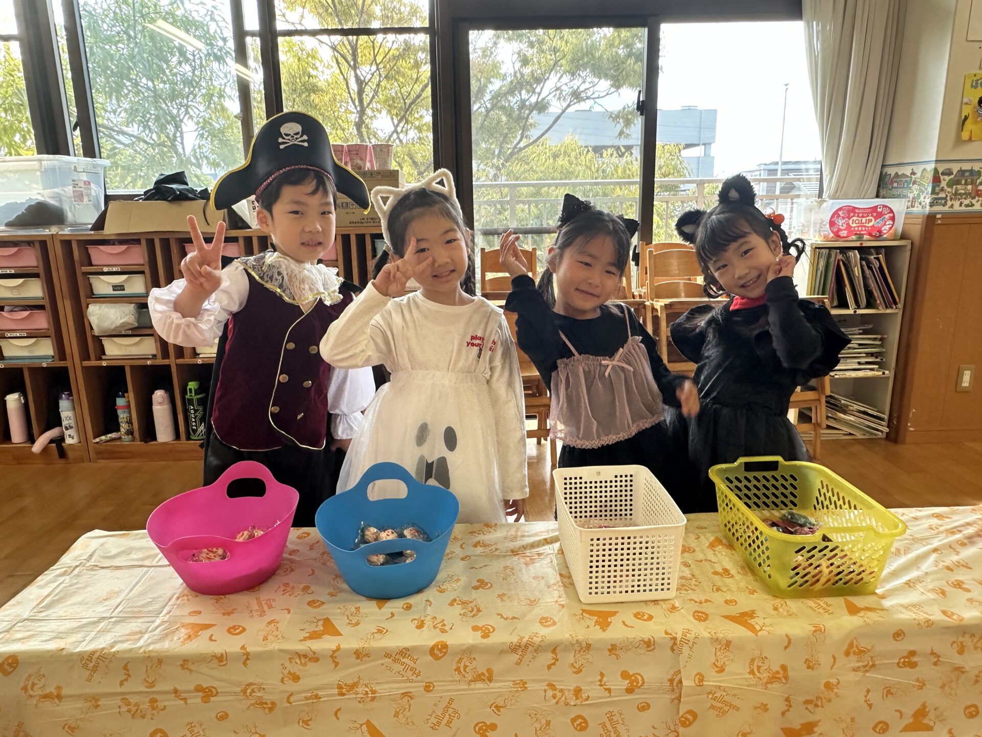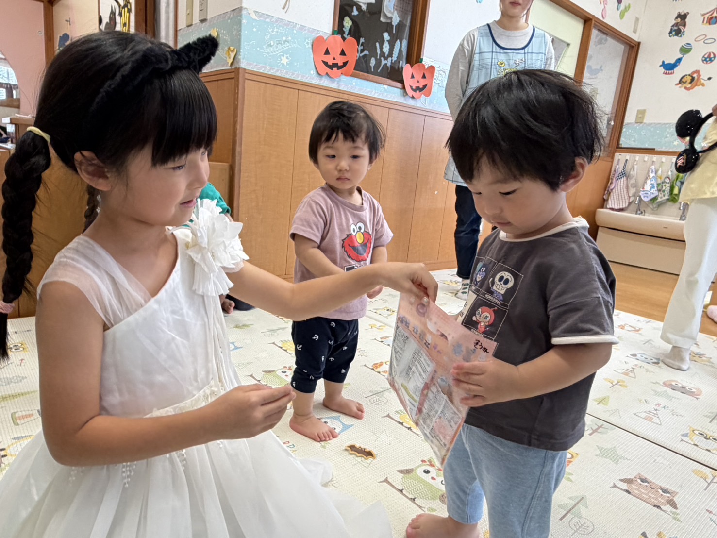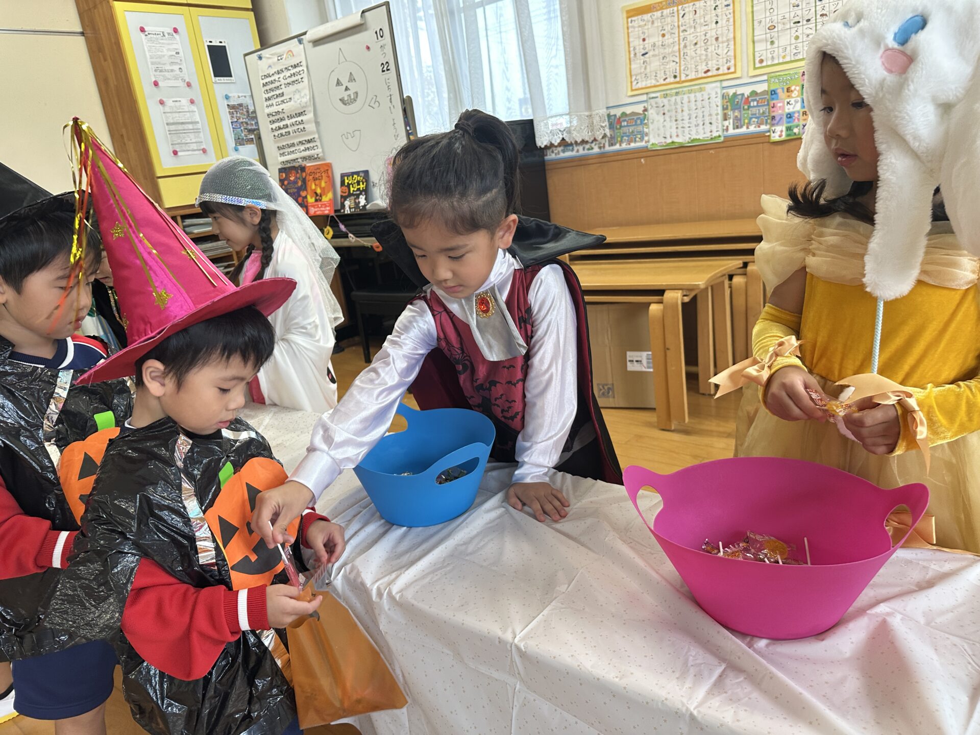 そしてゆり組、きく組のお友だちはひまわり組さんに「トリック・オア・トリート!」と言い、お菓子をもらっていましたよ✨