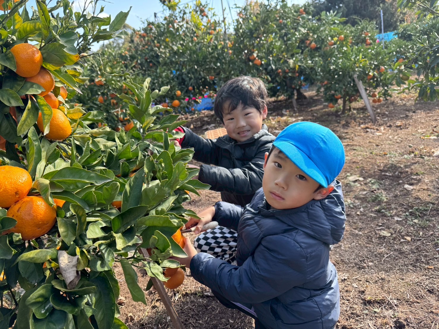 途中で、みかんの木が見えてくると「楽しみ~!」「早く着かないかな~!!」とワクワクした様子の子どもたちでした😊