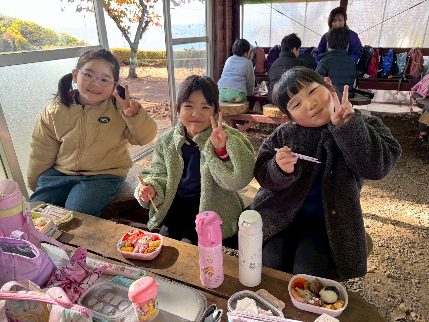 お母さんたちの愛情たっぷりのお弁当を美味しそうに食べていましたよ~😆💕