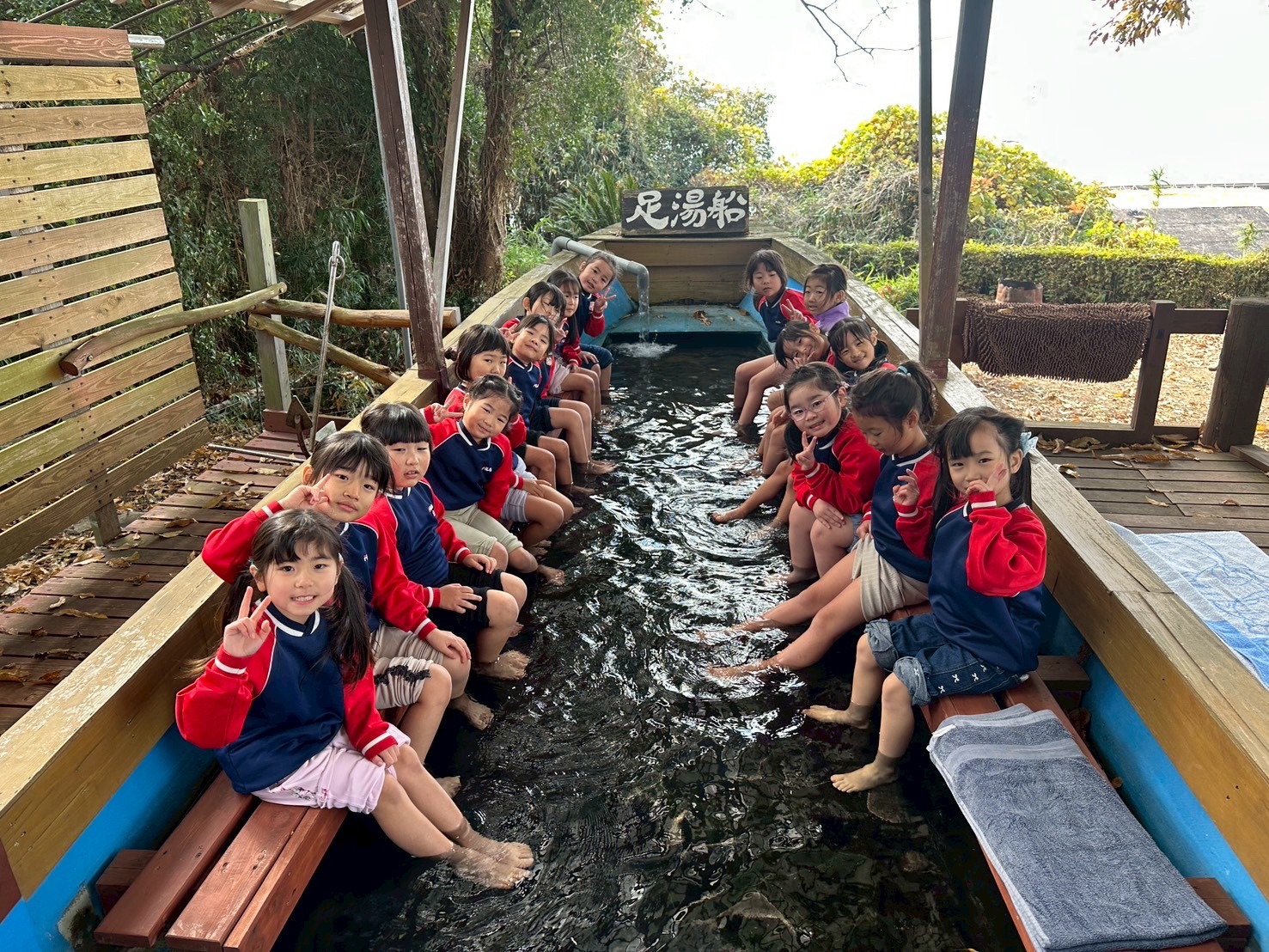 みんなで足湯にも入りました♨温かくてとっても気持ちよさそうでしたよ💓