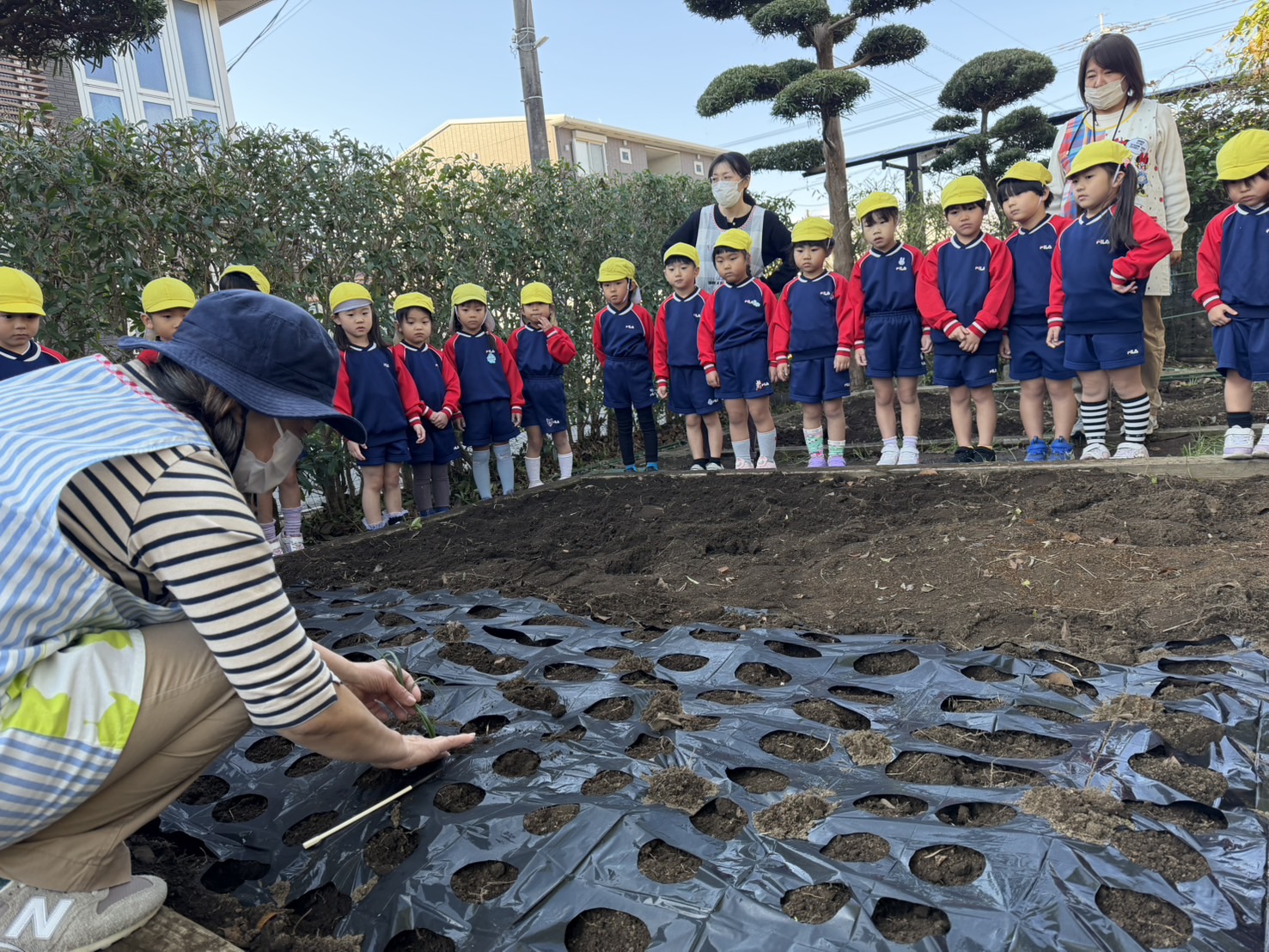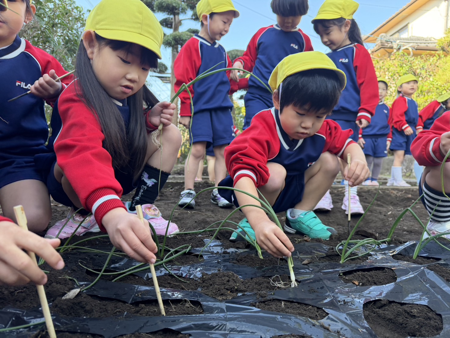 真剣な表情で集中して苗を植えている子もいれば、「これ、ほんとに玉ねぎになるのかな~?」「植えるの楽しいね~」「いつになったら玉ねぎ出てくるかな~?」とおしゃべりが止まらない子もいましたよ💛