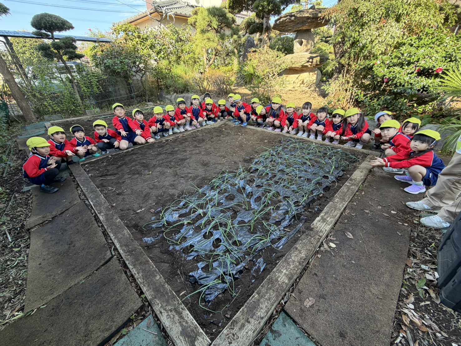 今日植えた玉ねぎは来年度、子どもたちが年長組になったら大きく育っている予定です🌞