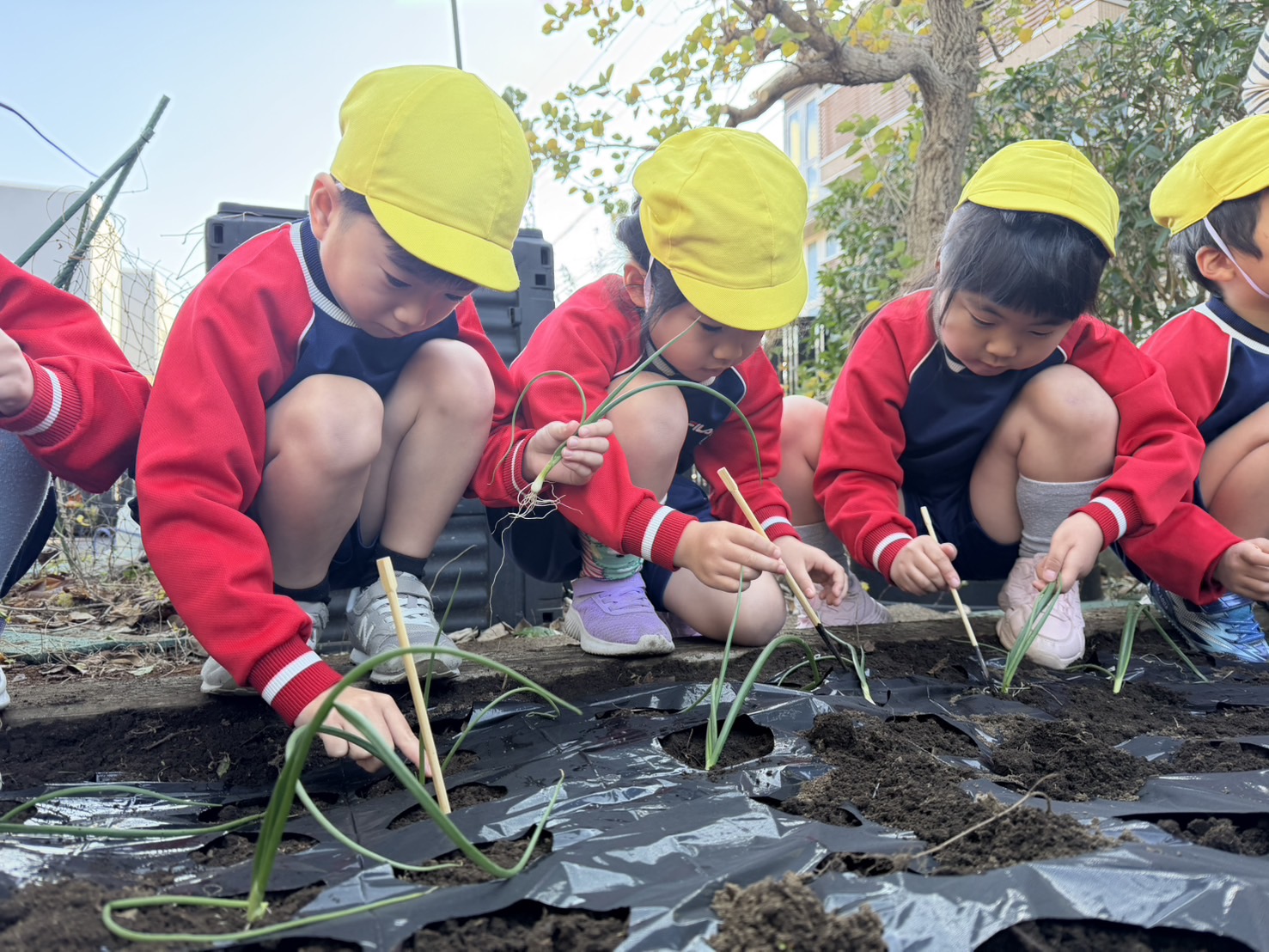 真剣な表情で集中して苗を植えている子もいれば、「これ、ほんとに玉ねぎになるのかな~?」「植えるの楽しいね~」「いつになったら玉ねぎ出てくるかな~?」とおしゃべりが止まらない子もいましたよ💛
