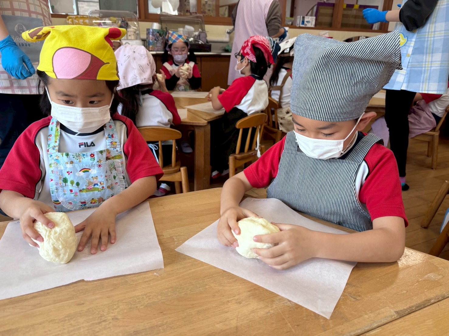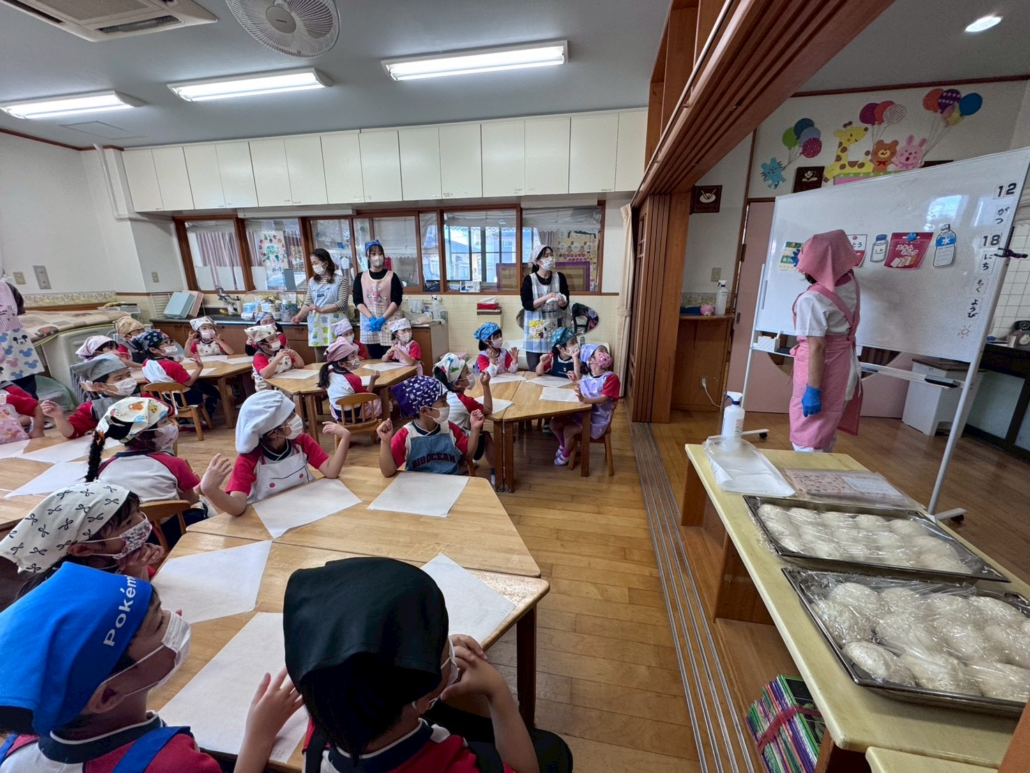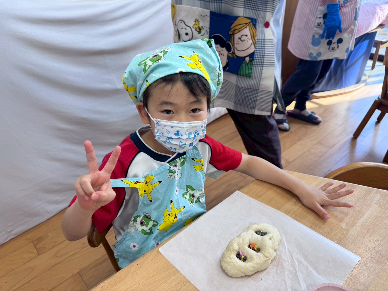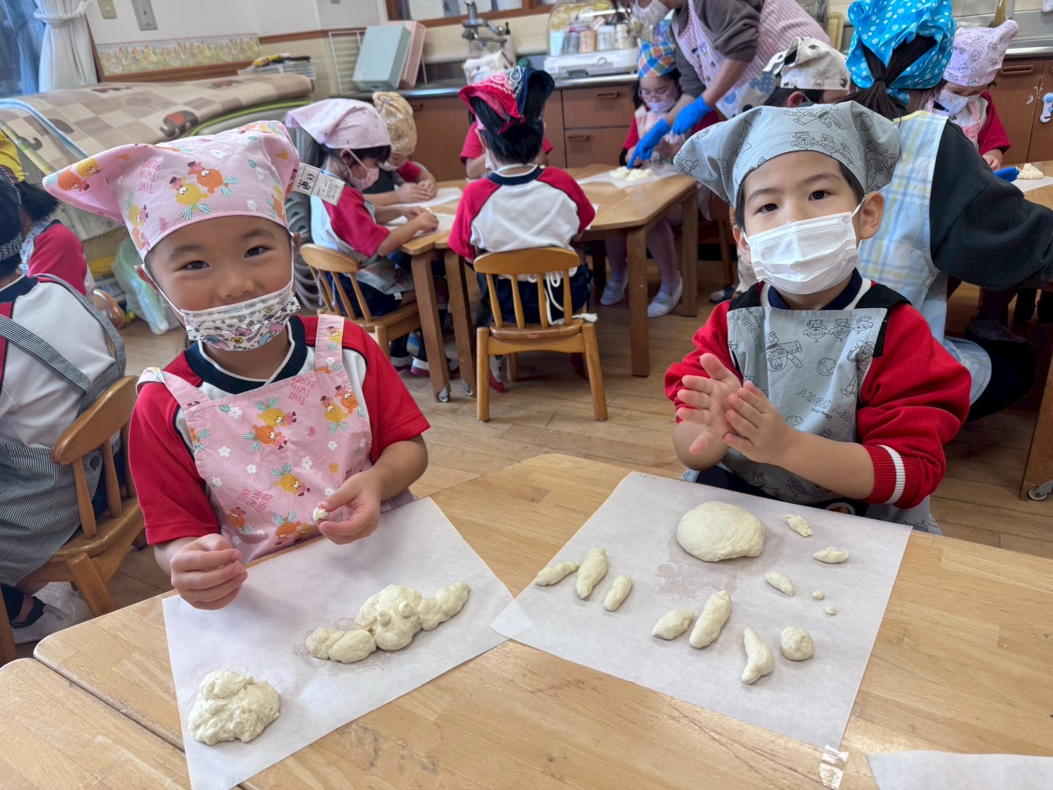 前日からとっても楽しみにしていたようで、「昨日は早く寝たよ!」「エプロン・三角巾を忘れずにちゃんと準備してきたよ!」という声がたくさん聞こえてきました😊