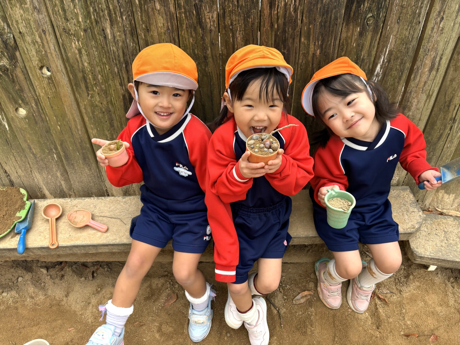 戸外遊びでは、お砂場でおままごとをしているお友達もいます!