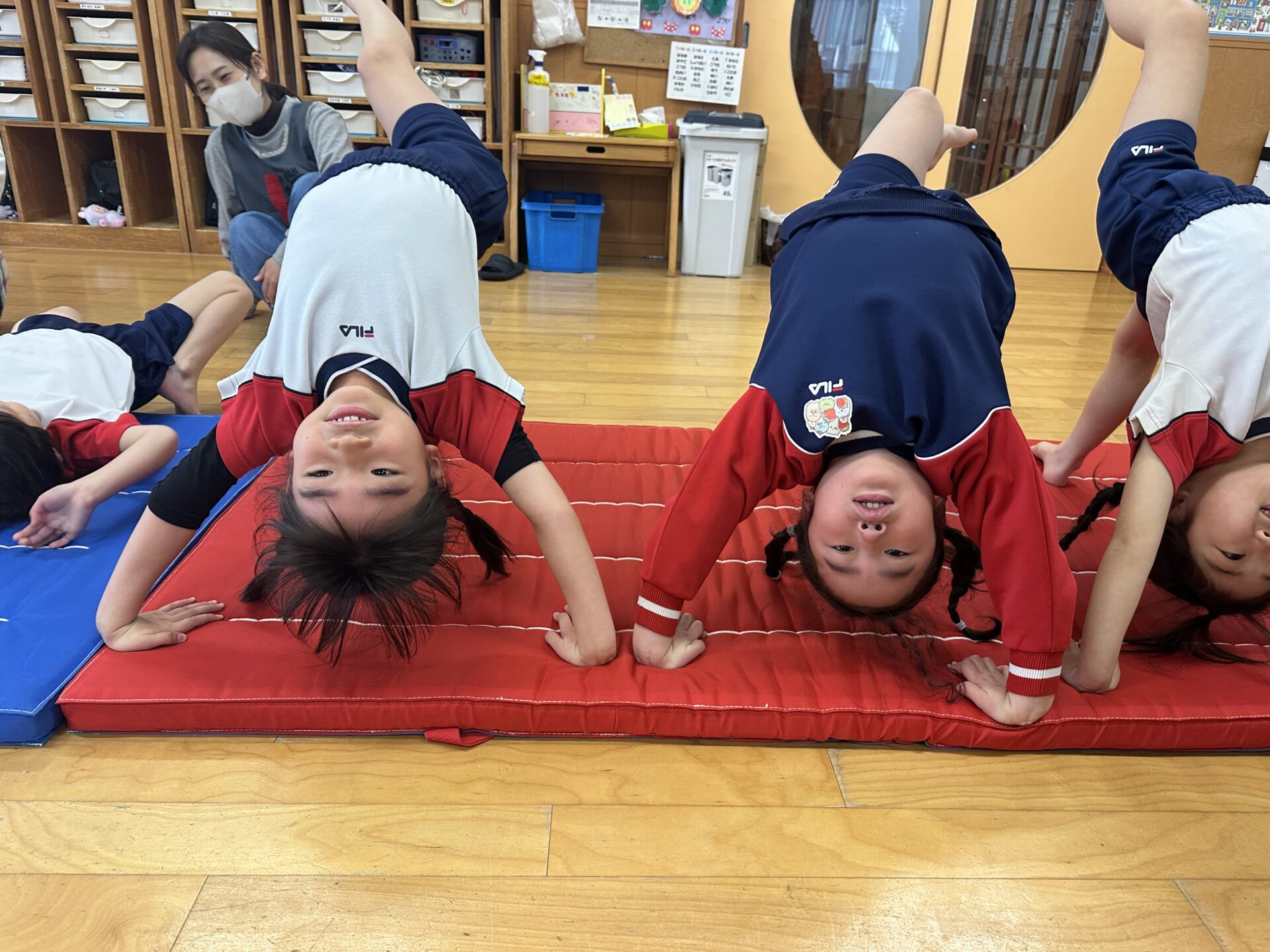 体操教室では始めにマットを使った体あそびを行っています✨