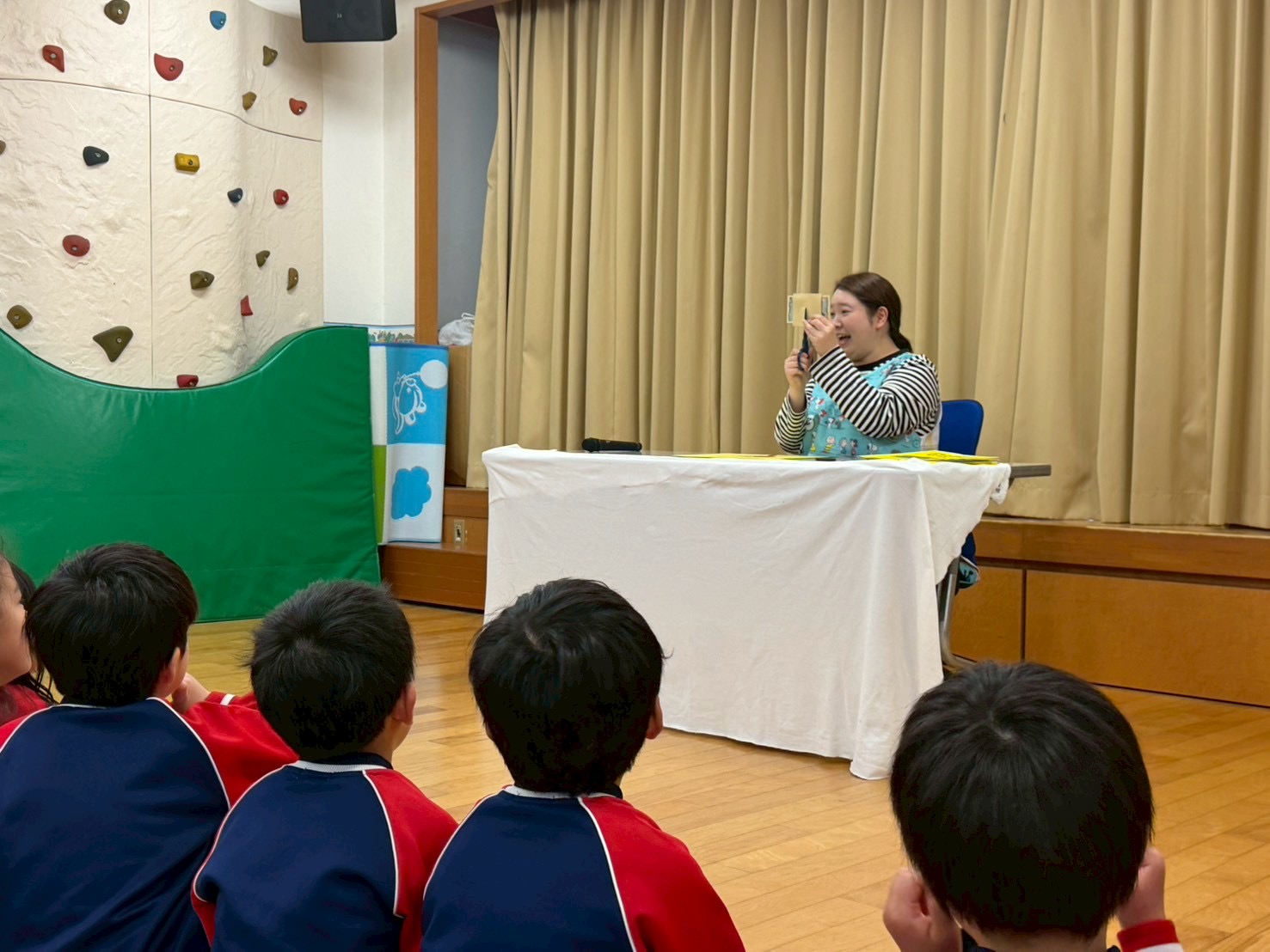 ひまわり組のお友達は、「え~下に何か隠してるんじゃない!?」と少し疑いの目を持ちながらも、マジックが成功すると口を開けて驚いた表情を見せる可愛い子どもたちでした😆