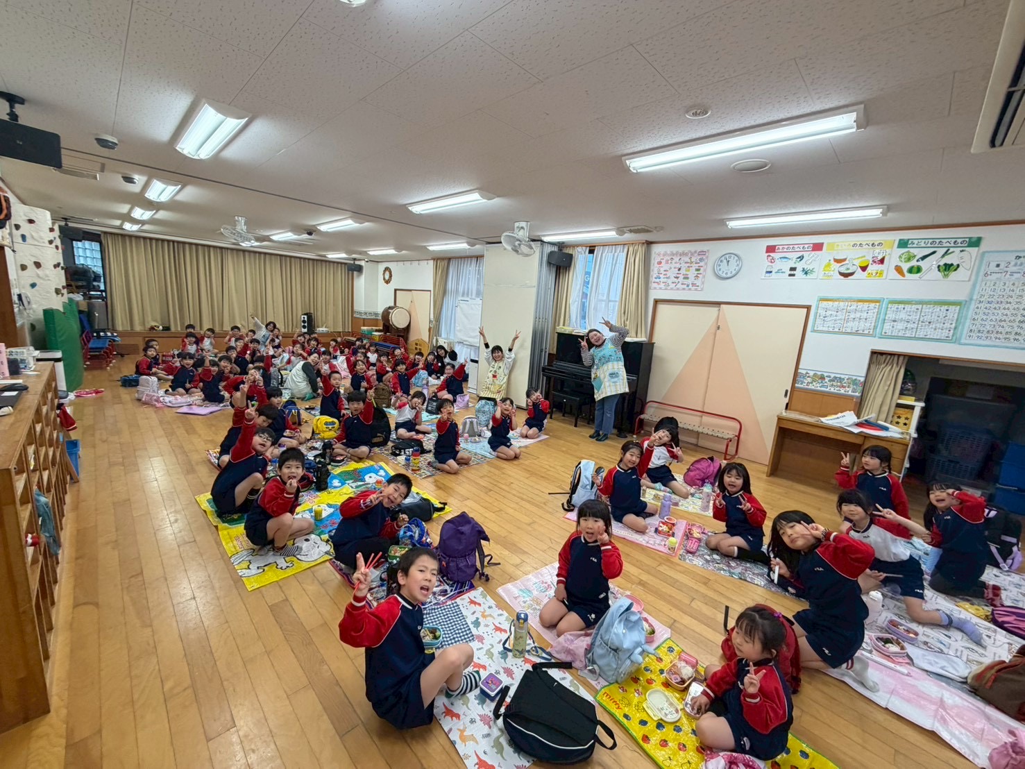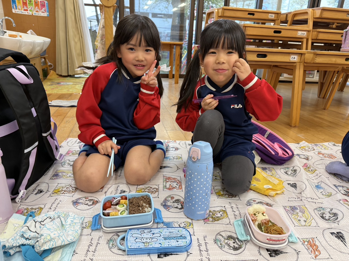 ばら組さんはお部屋にござを敷いてお弁当を食べましたよ⭐
