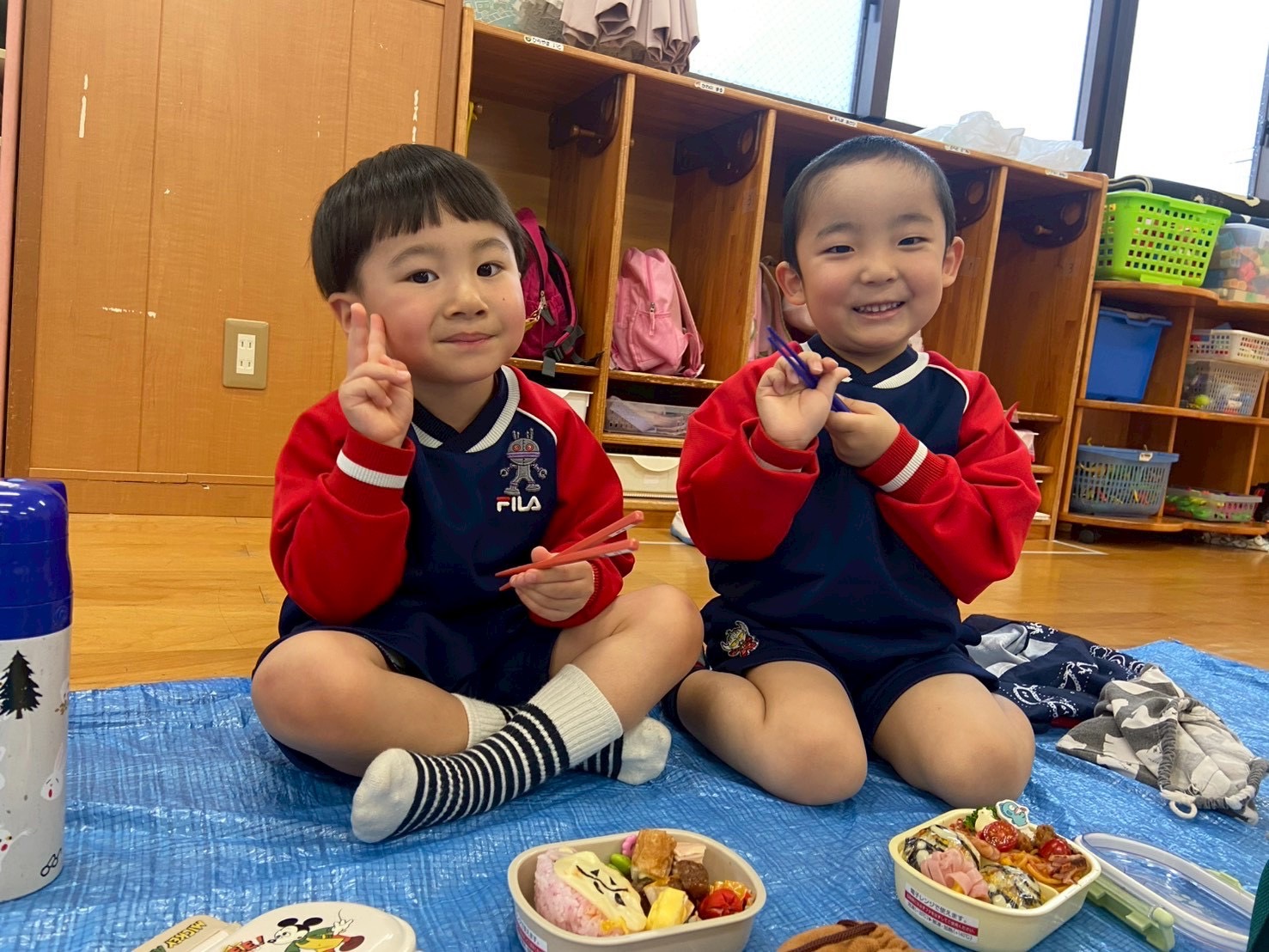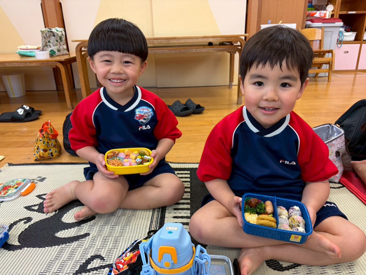 「みんなで食べるとおいしいね~✨」とにこにこでお弁当を食べていました🍙💓
