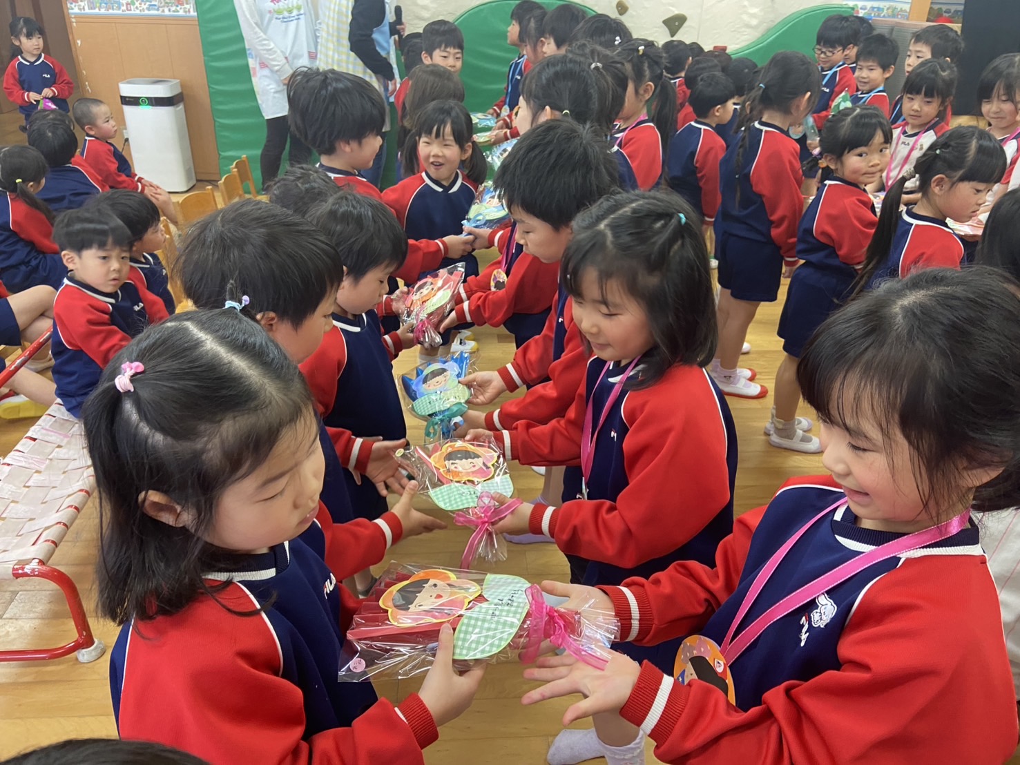 おわかれ会では、ばら組・ゆり組・きく組さんからひまわり組さんに卒園プレゼントを渡しました!