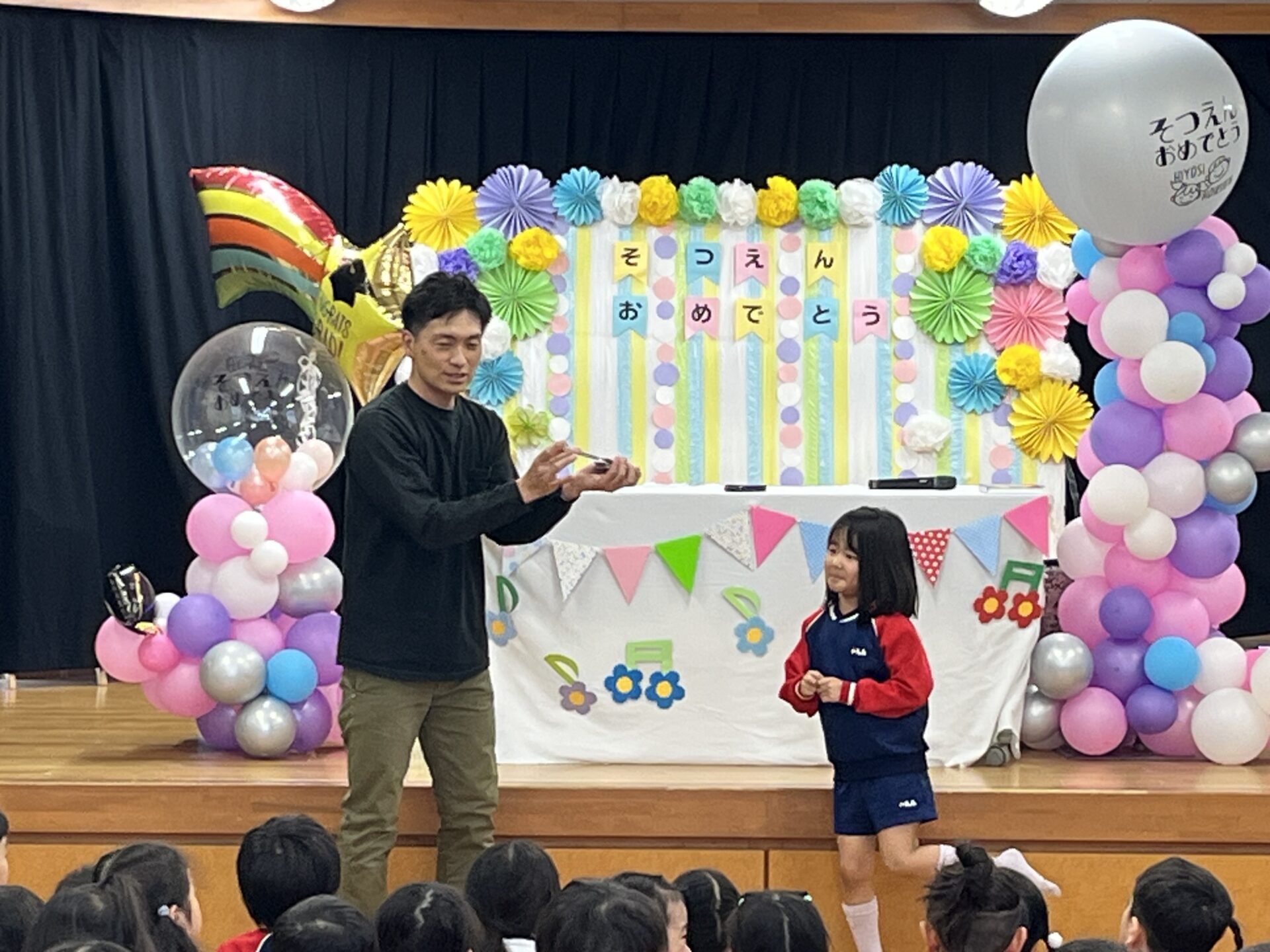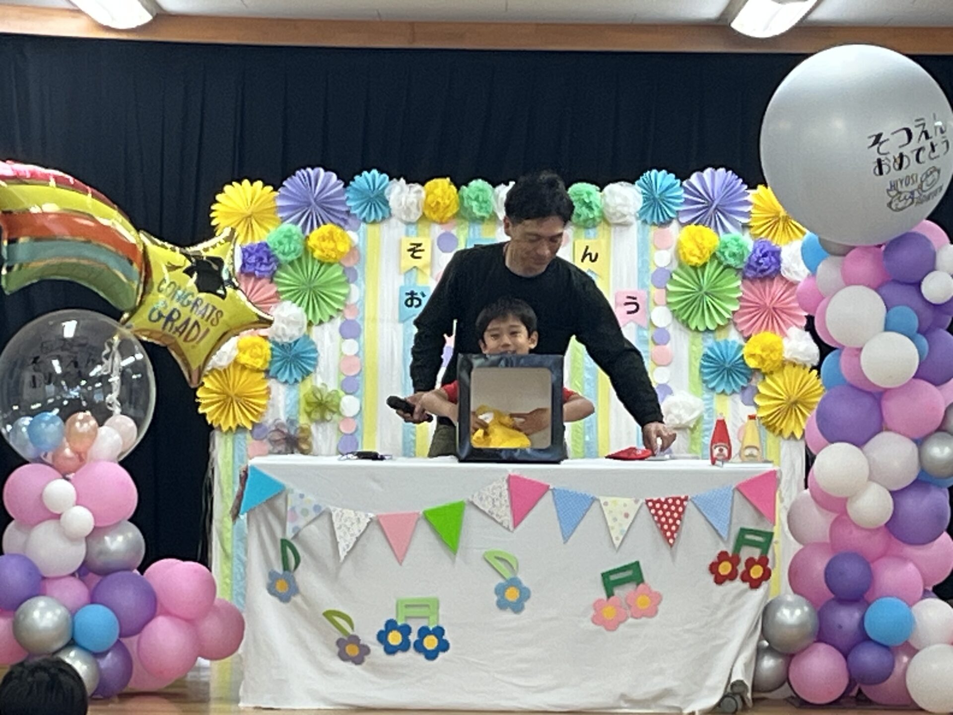 先日、年長児の保護者のお父様がひまわり組さんの卒園のお祝いにマジックショーをしてくださいました。
