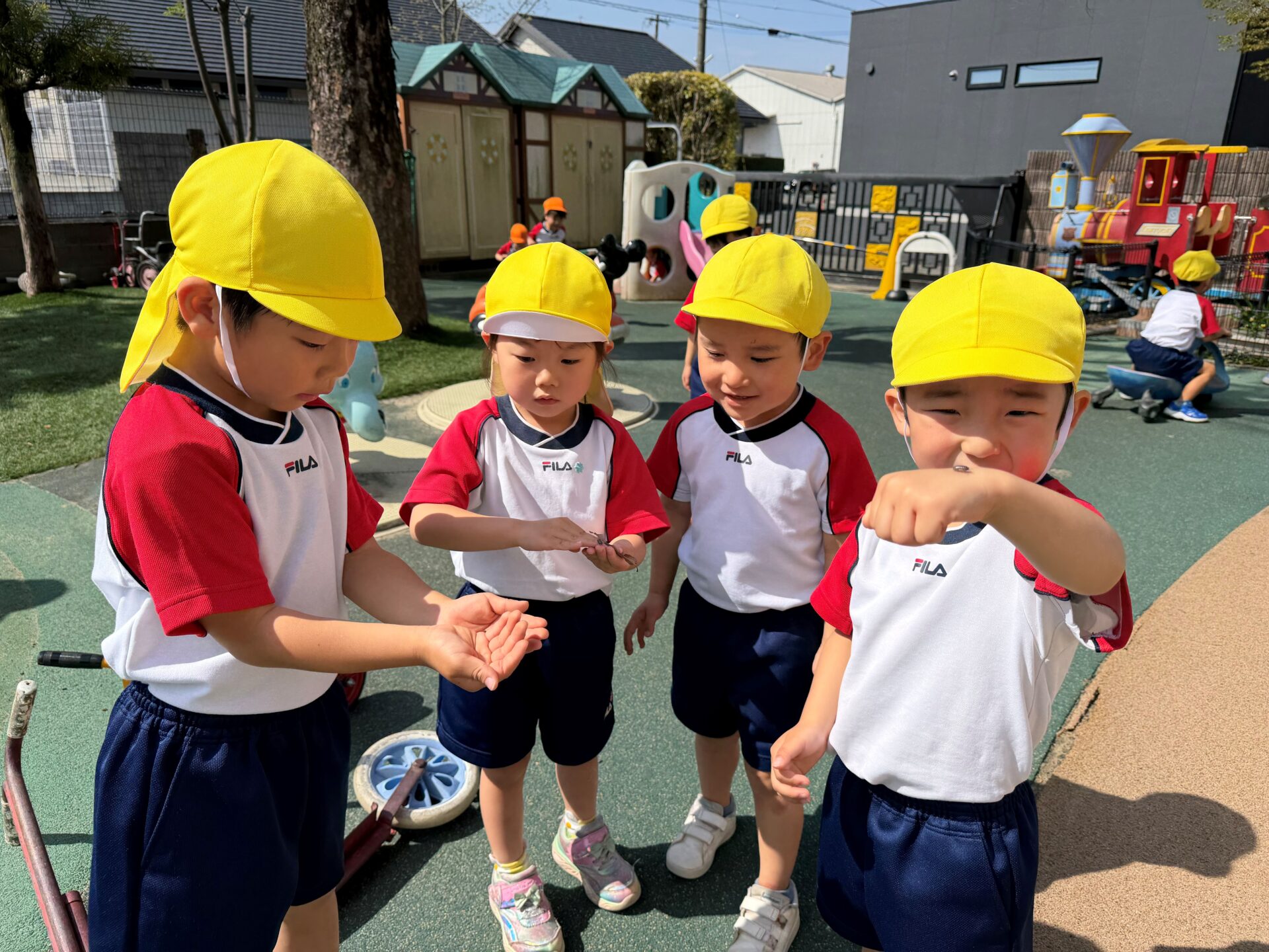 お外では夢中になってダンゴムシを探していましたよ🎵「可愛いね~」と優しくダンゴムシをよしよしと撫でていました😊