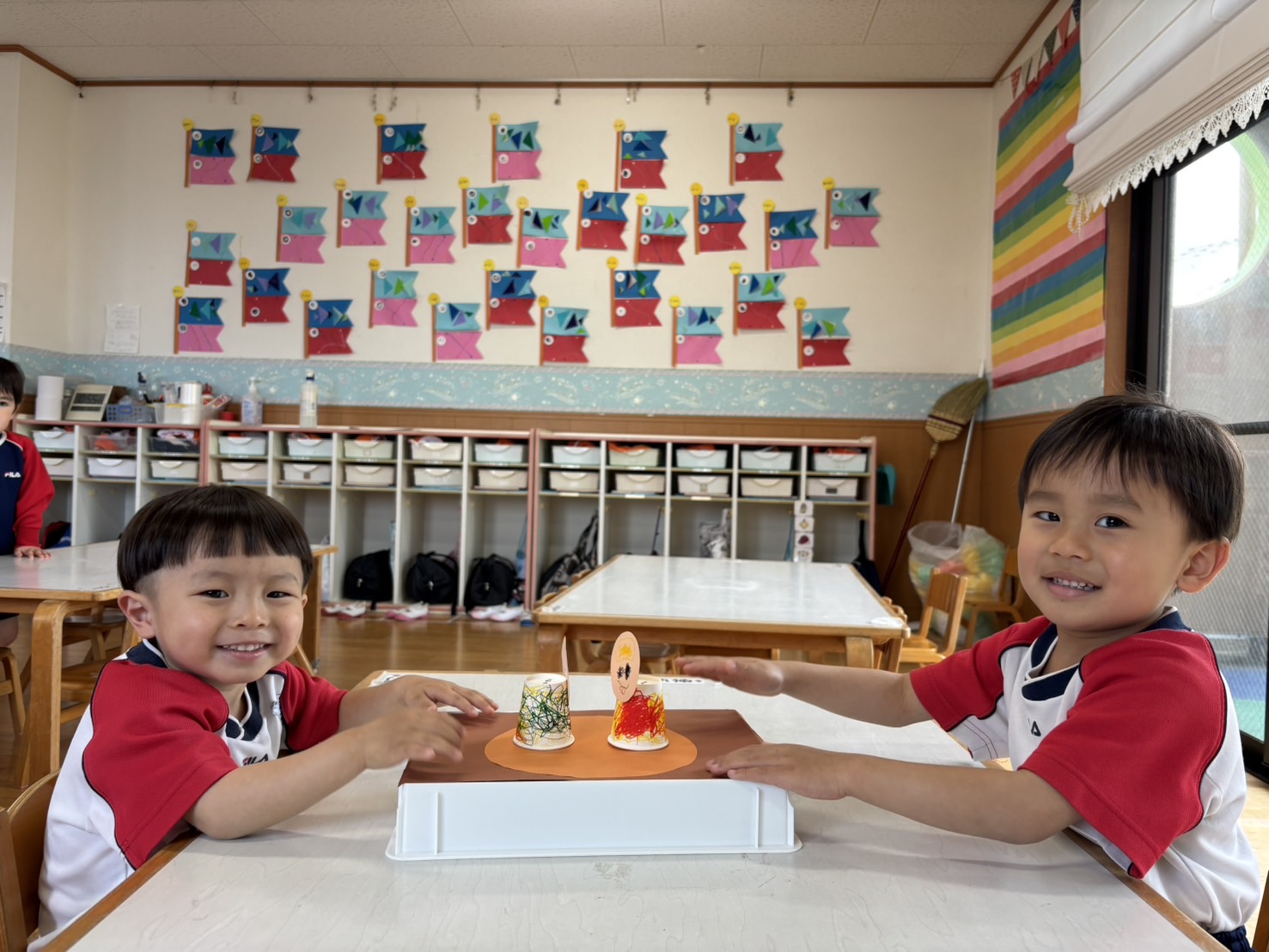 紙コップで一人ひとりオリジナルの人形を作り、トントン相撲対決をしました🔥