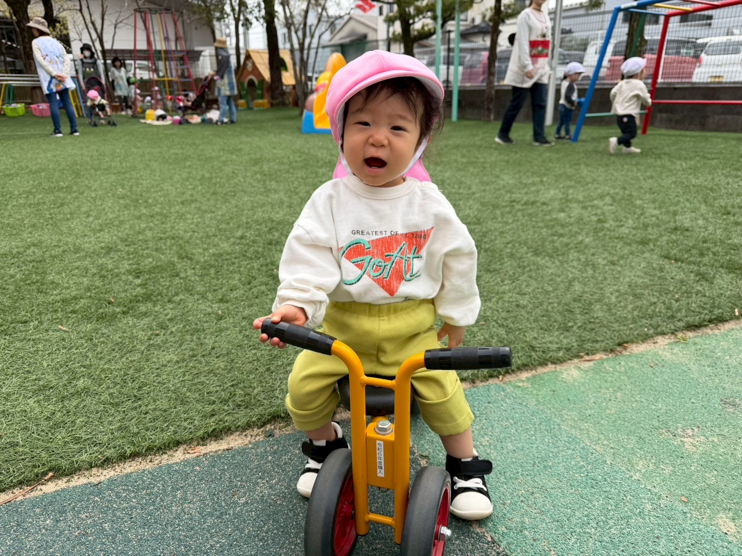 天気の良い日にはお外に出て、たくさん遊んでいますよ~!とっても可愛い笑顔ですね💕