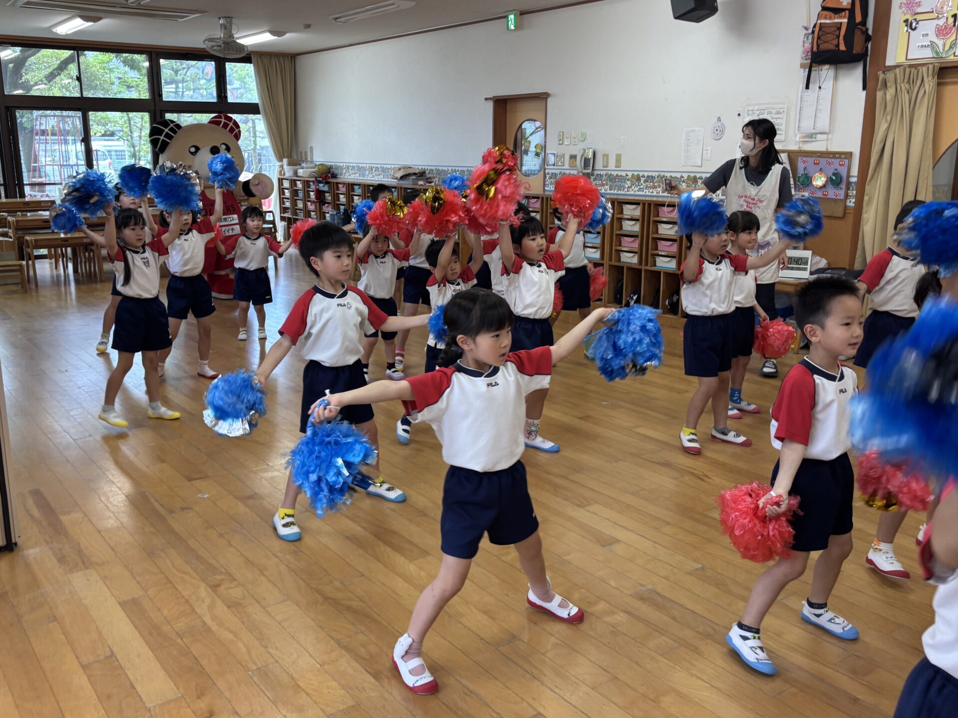 チアダンスを教えてもらい、ポンポンを持ってノリノリで踊っていた子どもたちでしたよ😆最後にはぼるたんへダンス発表会も行いました🎵